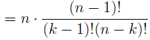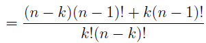 The set B can be obtained by adjoining the element n into a (k-1) subset of the (n-1)-set , thus the size of set B is given by,