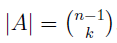 Set A is really just the set of all k-subsets of the (n-1)-set , thus the size of set A is defined to be,