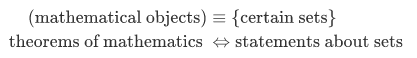 It is sometimes said that, "mathematics can be embedded in set theory." This means that mathematical objects (such as numbers and differentiable functions) can be defined to be certain sets. And the theorems of mathematics (such as the fundamental theorem of calculus) can be viewed as statements about sets.