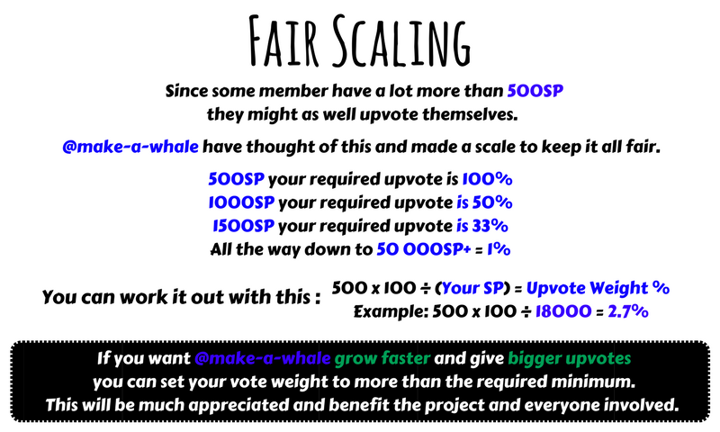 We have worked out a scale that will make sure @make-a-whale always upvotes you with a bigger upvote than the one you used to upvote the daily post, if you post on average once a day. Thus, the fair scale ensure you always win!