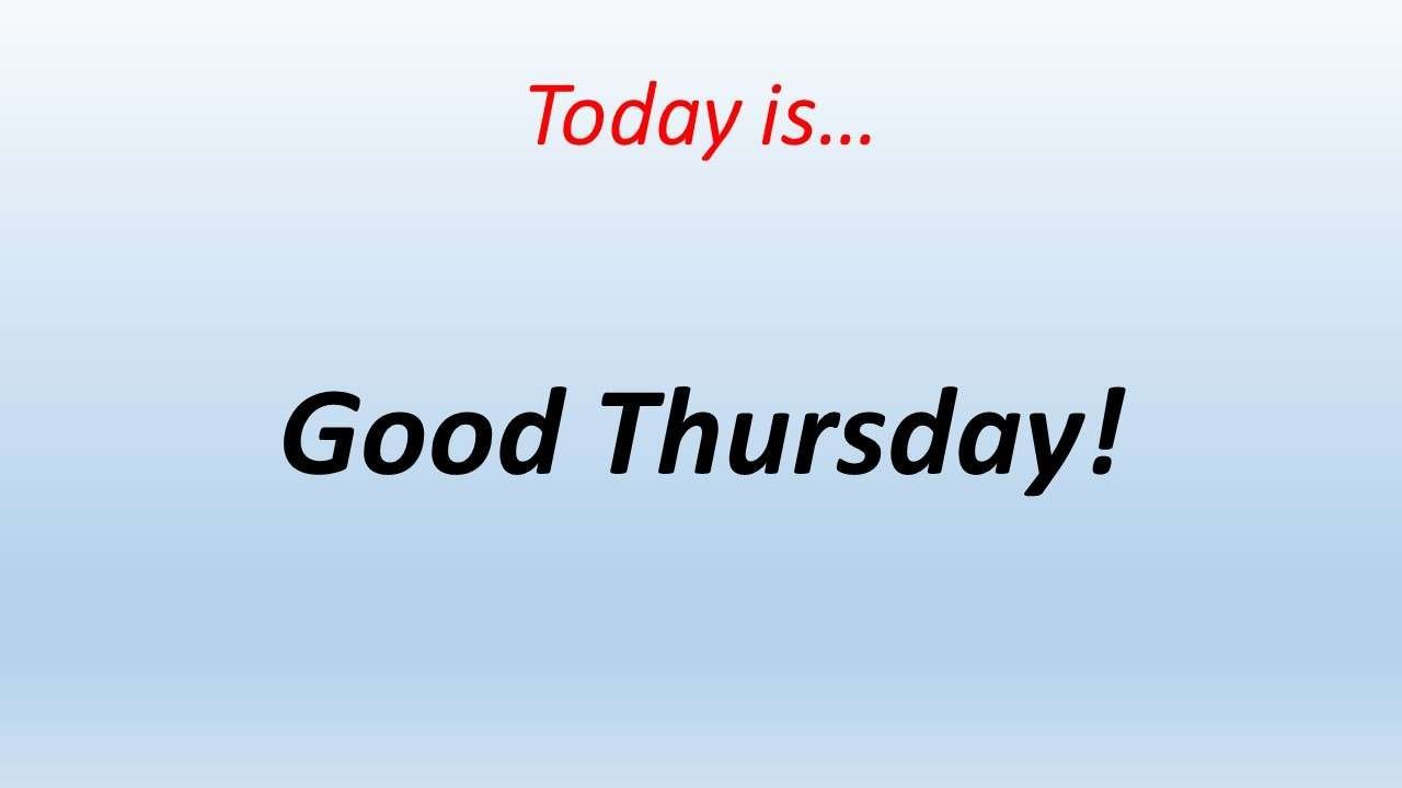Me: TODAY is Good Thursday! Wife: Huh? What’s Good Thursday? Me: Tomorrow is public hoiliday Good Friday. Wife: So? Me: So, today is Good Thursday then.