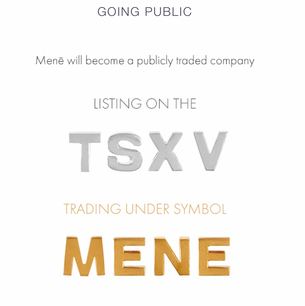 Mene has begun trading on the TSX Venture exchange under the symbol MENE.