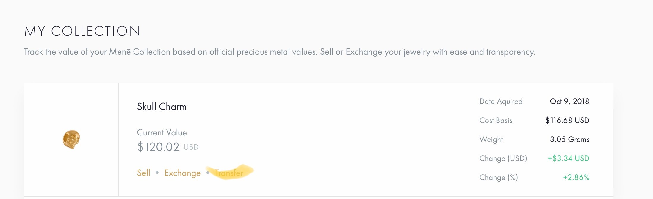 Mene also has exclusive technology that allows you to track your investment jewelry performance from the time of purchase.