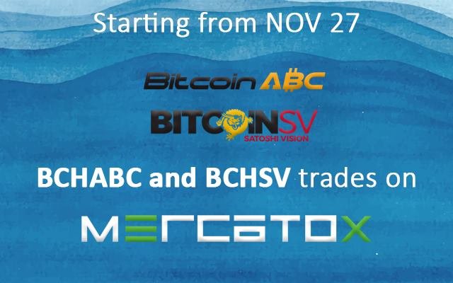 BCHABC and BCHSV markets are available for trading on Mercatox.Com now
