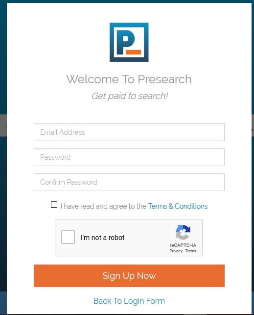 You will be redirected to Presearch site and you will see the below page. Click on Sign Up Now!