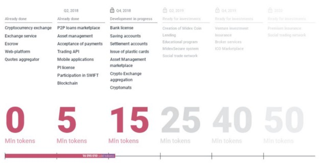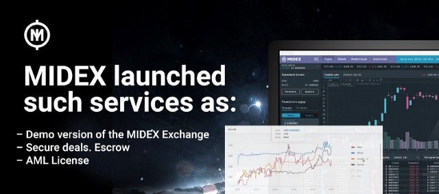 Services offered by Midex include escrow services, cryptocurrency exchange, P2P loan market, trade APIs, SWIFT, Savings accounts, asset management markets, social trading networks, insurance, markets, etc.