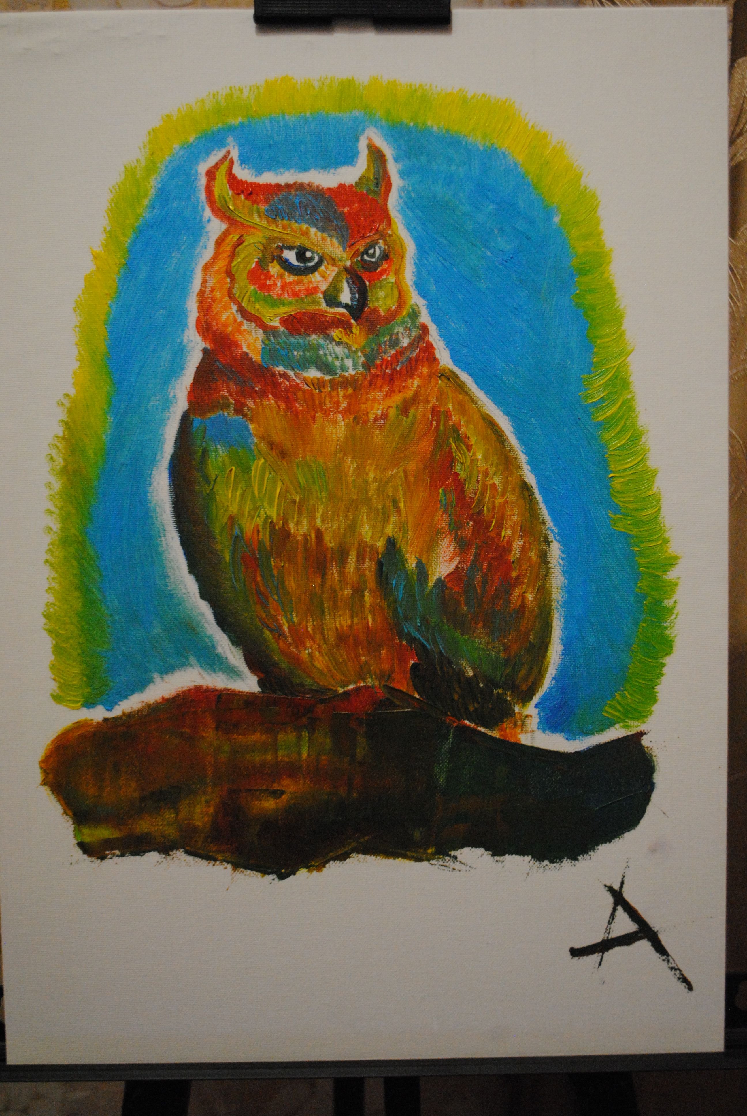 Minerva's Steemit Challenge. My second entry.acidsun (66)in #minerva • 8 years ago (edited)Hello steemians) I want show to you my new work for Minerva's Steemit Challenge Materials: canvas, paint. #owl #canvas #art #contest