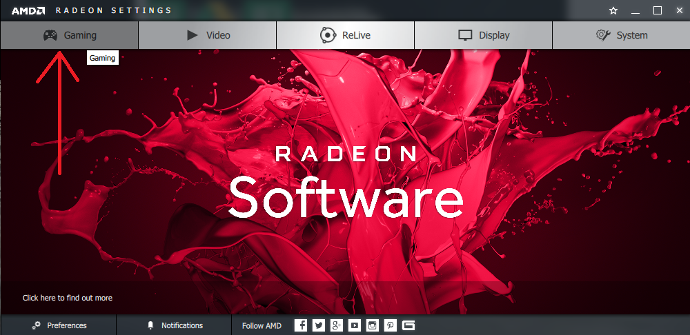 To reach the HBCC settings, right-click on your desktop and click "Radeon Settings." Then, click on the "Gaming" Tab (because we are going to be gaming, right?).