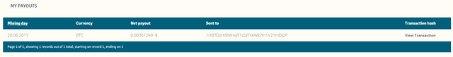 I haven't been keeping detailed records of mining time, and power drawn, but I plan to figure the time invested shortly for the return I've gotten and I'll share that in my next post! But now, for the exciting part, I present to you, my very first mining payout!