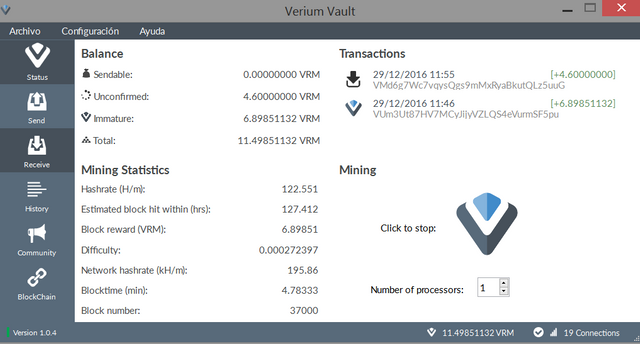 Receive daily more than 6 VERIUM of the mining of your portfolio for having it open generating blocks will be good news for many people are more than 0.00030000 BTC a day doing nothing