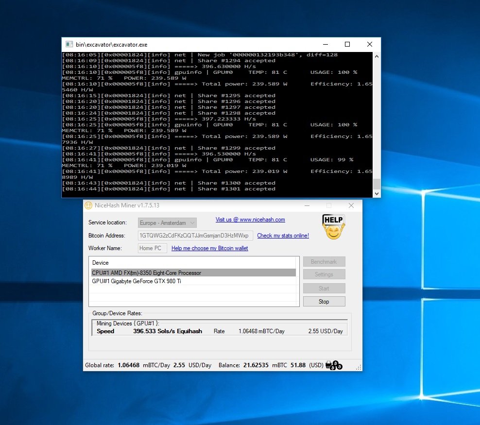 I have shown off my mining rig a few times now however i do run mining software on my personal pc aswell. I used to overclock it but it was getting a bit too much for it so i now run this at stock.
