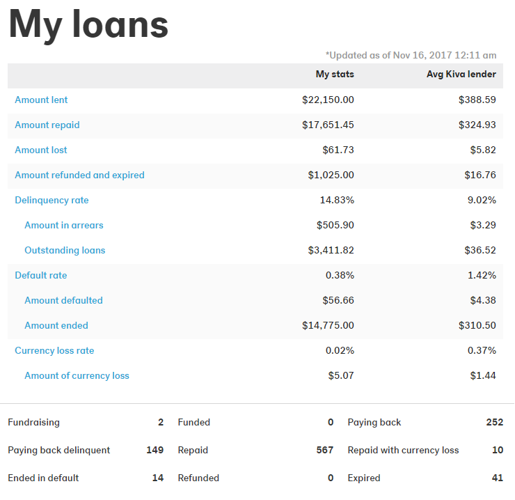 Thank you! Nice to meet a fellow Kiva supporter here. :) And impressive numbers, congrats!