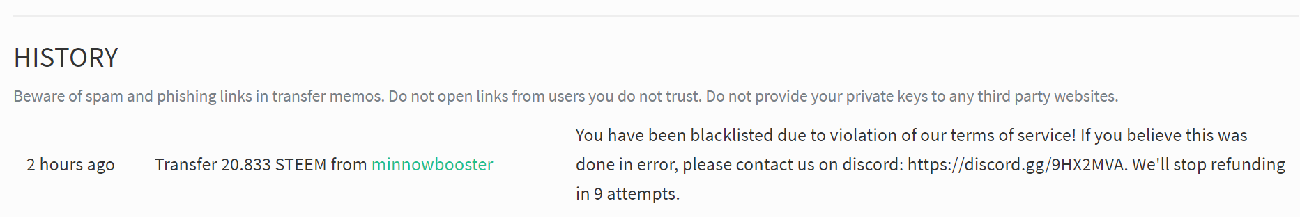 Now if you think you are innocent or in doubt that you are not then you can make a request in the channel by sending your wallet's link https://steemit.com/@hungryhustle/transfers. This will help the team to quickly analyse your situation and your behavior towards MB services.