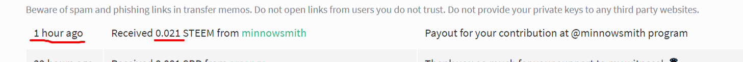 Yesterday, day 3, I told you I was up to 0.045 Free Steem from Minnow Smith . Well I just got day 4 pay out as you can see..