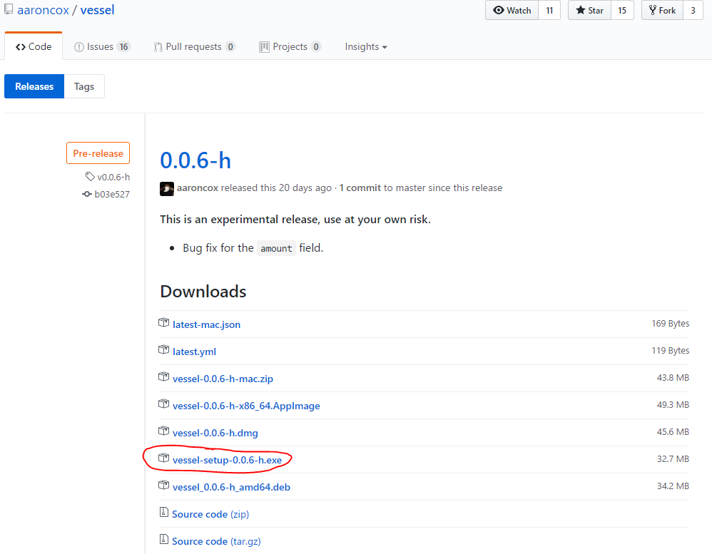 Please head over to github and grab the latest release of Vessel, currently it is 0.0.6-h.