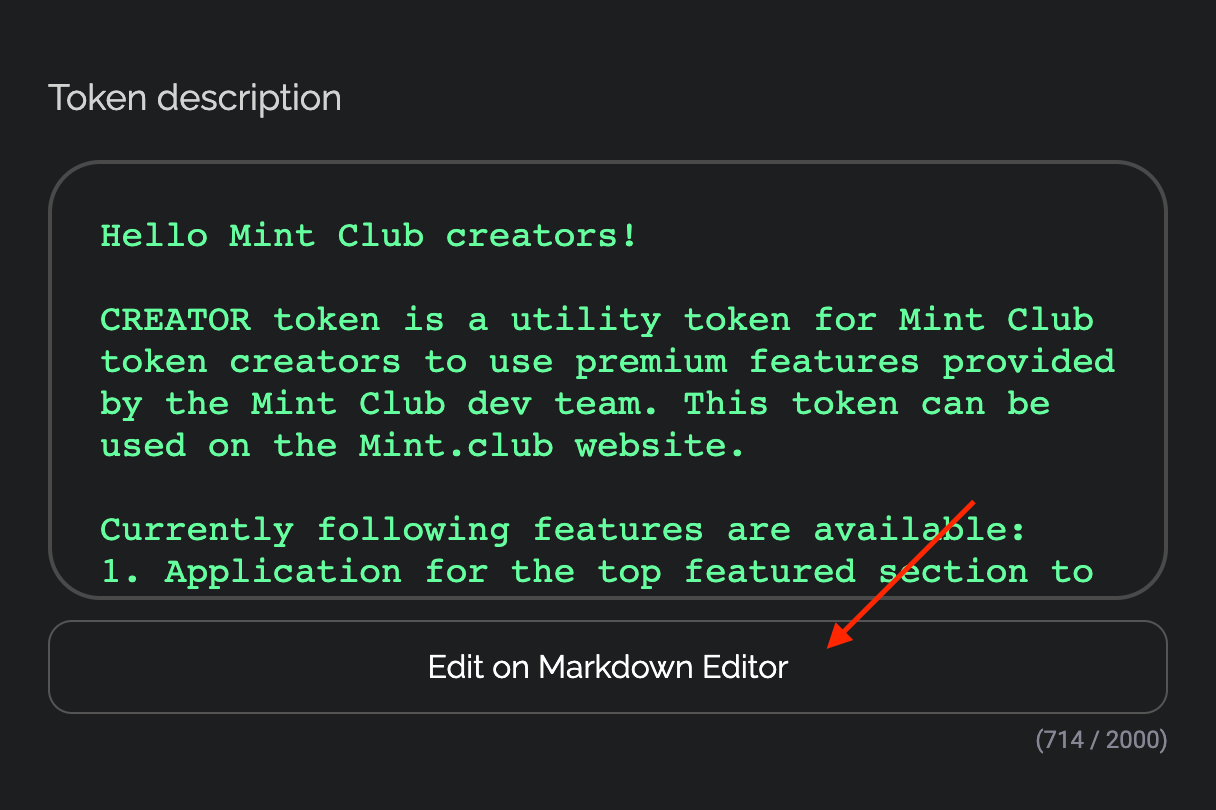 Markdown editor, Chat room registration for smart tokens on Mint Club