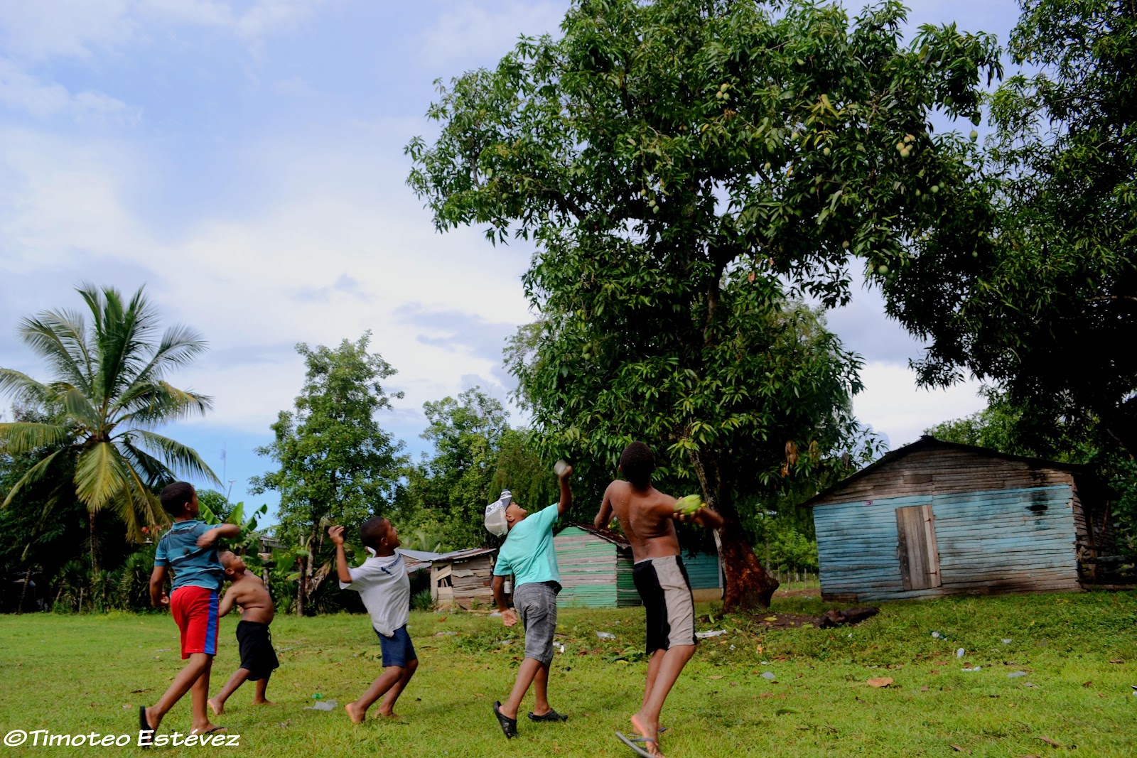 Una de esas tantas tardes a mitad de mes, los niños se aproximaron a lanzar piedras una vez más pues no podían montarse en la mata que era muy alta.