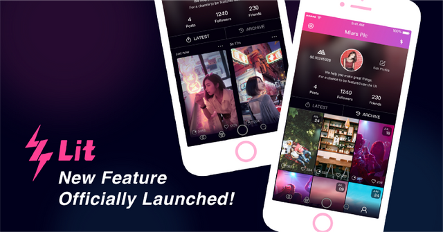 Archive: appears in your profile page. It works as your personal photo gallery, collecting all your posts you have shared on Lit.