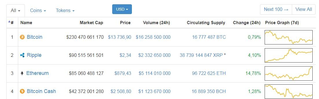 wow ripple is on second position.I have invested in Ripple.Thank god I am in profit in the beginning of 2018.Steem and sbd are also increasing,good news for all the steemit community.All the best to all traders.thanks for the post Sir.upvoted and resteemed