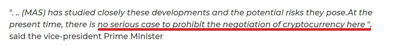 Tharman Shanmugaratnam, Deputy Prime Minister and minister in charge of MAS (Monetary Authority of Singapore / central bank), stated on February 5th, that they will not pursue intervention and harder regulatory measures on cryptocurrencies.