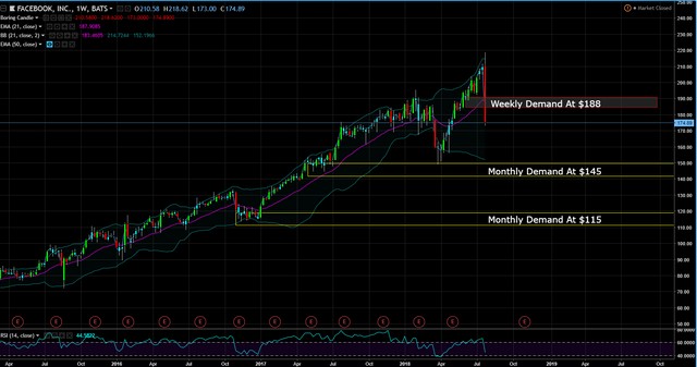 Since revenue growth is decelerating (95% coming from ads), with the Markets topping, with Steem starting to become mainstream through SMTs, I think we have seen the highs in Facebook for years to come. I’m calling $219 the high in Facebook especially if Apple doesn’t save the day for FANG next Tuesday when they announce their earnings.
