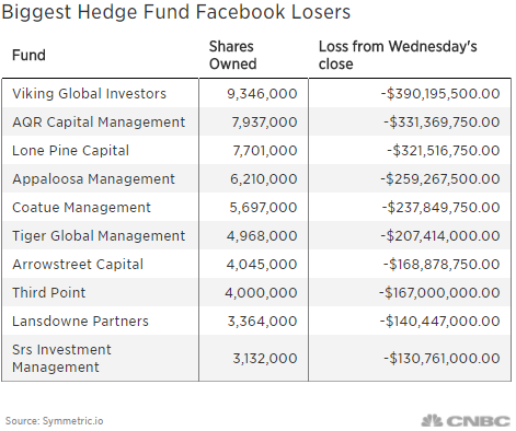*The Smart Money got it wrong as well. Of 848 hedge funds tracked by Goldman Sachs, 97 had Facebook as a top 10 holding, according to the firm's May "Hedge Fund Trend Monitor" report...6 billion dollars in stock value vanished overnight.