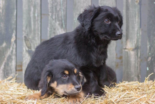 This is one of the best photos of our puppies. Nobody set them on purpose, they did it themselves. Toffa (black with brown) generally loves to pose. I suspect that he knows that he is very handsome. But he still has to learn the commands in order to be a more successful model.
