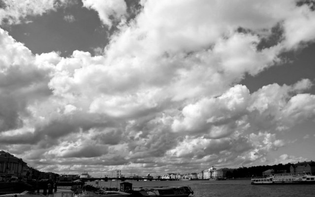 MONOMAD PHOTOGRAPHIC CONTEST - WEEK #14 TOPIC - "CLOUDS"steemCreated with Sketch.may2015 (73)in #monomad • 8 years ago (edited) St.Petersburg. Clouds over the Neva river: Rules here #photography #monochrome #blackandwhite #contests