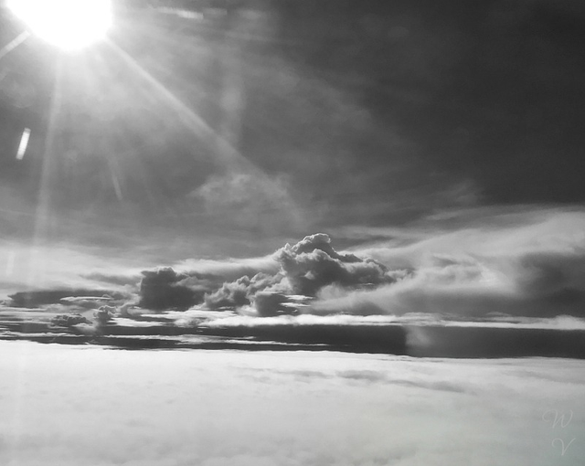 Such a wonderful feeling to be flying above the clouds ~ With both sun and storm. And so magical to see the colors of the rainbow in a black and white image. 💗