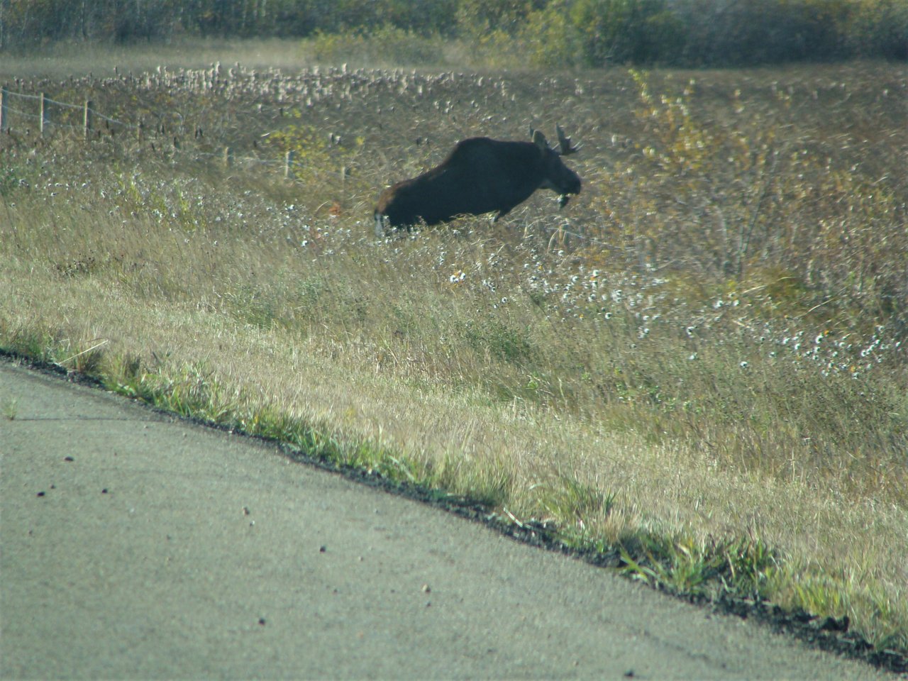 Moose are such a gorgeous animal, it’s pretty cool that you had them roaming around your yard in Alberta. We have moose around where I’m from too but they don’t come to the yard and I have never been lucky enough to get a picture of them. My dad works in the forest and he has recently had three moose hang out near the forestry machine every day. Sharing a picture he took with the phone: