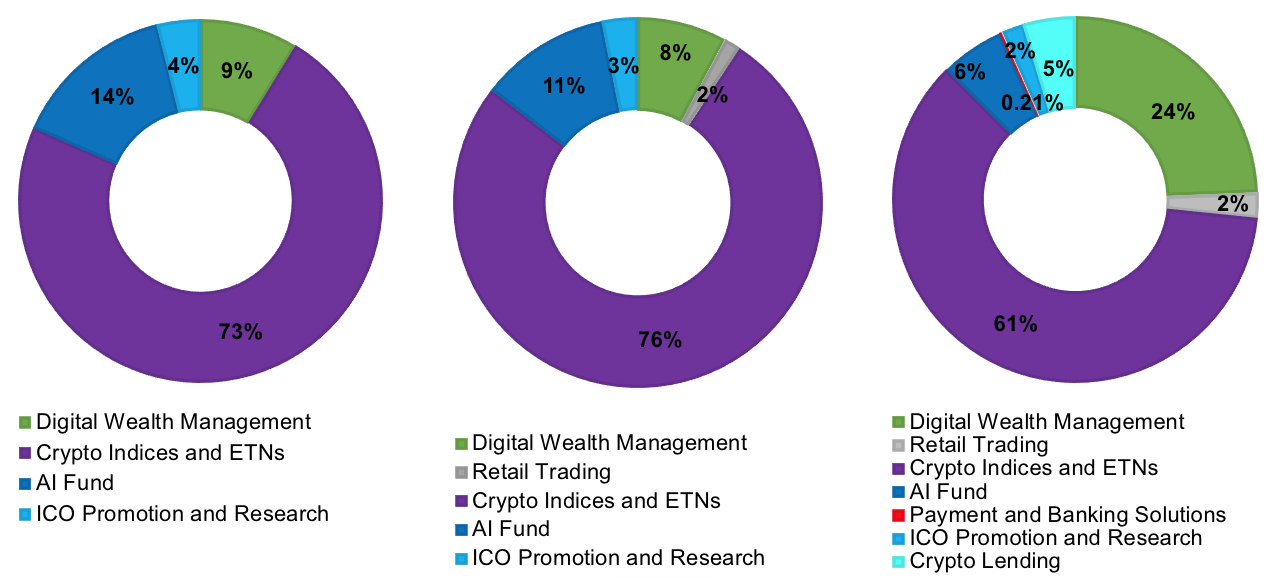- Desember - 2018: Mandat Investasi Cerdas Digital, 3 indeks investasi Crypto, AI Crypto Fund, Crypto ETN, Penitipan dan Dompet, ICO