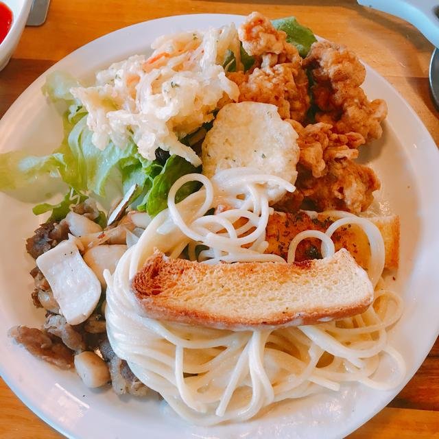 메인 메뉴인 '샤브샤브'가 나오기 전 샐러드바를 이용합니다ㅎㅎ 파스타, 치킨, 튀김, 소불고기 등 아주 다양합니다. 루지 레이스를 신나게 한 터라 배가 넘 고팠어요. 그래서 막 담음. 다 담음ㅋㅋ