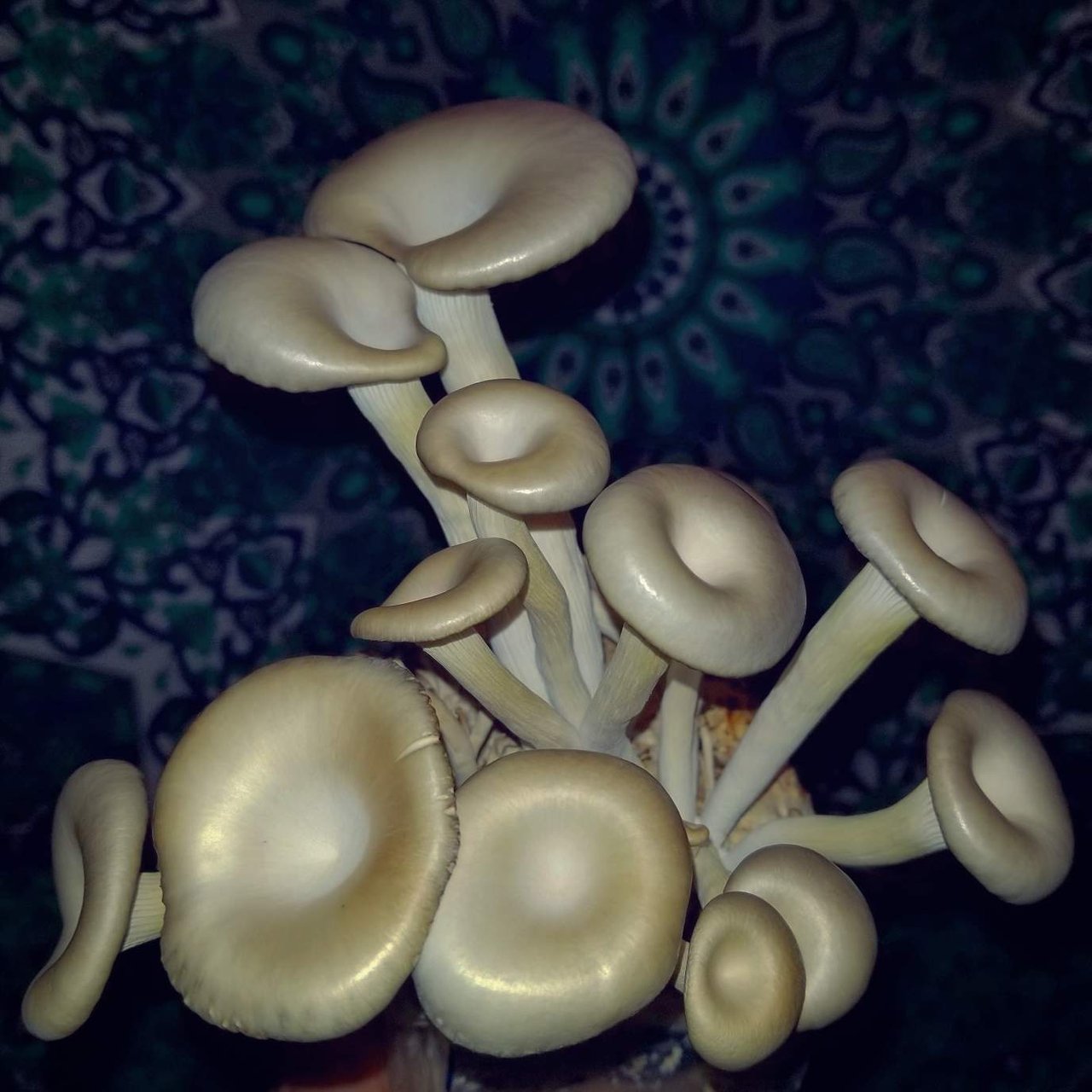 Another kit I have tried is the blue oyster mushrooms. These guys are a bit tricky to grow to full size. They dry out easily so the need a good humidity tent setup. Other than that they are pretty easy to grow and have multiple blooms.