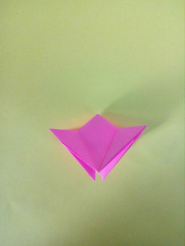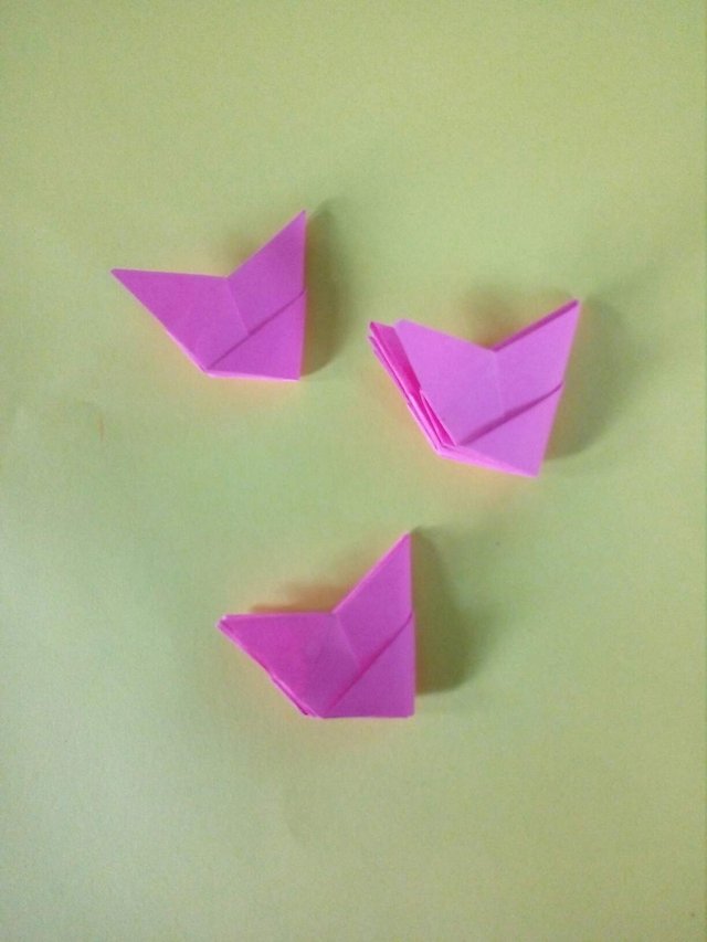 ဆက္လက္ၿပီးပန္းပြင့္ျပဳလုပ္ပါ့မယ္။ပန္းတစ္ပြင့္မွာစကၠဴေခါက္သံုးခုျပဳလုပ္ရမွာပါ။စကၠဴေခါက္နည္းကိုေတာ့ပံုမ်ားျဖင့္ျပထားၿပီး၊စကၠဴေခါက္သံုးခုကိုေကာ္ကပ္ရင္းပန္းပြင့့္မ်ားျပဳလုပ္ပါတယ္။ပန္းေရာင္ႏွင့္အ၀ါေရာင္ပန္းပြင့္မ်ားျပဳလုပ္လိုက္ပါတယ္။အရြက္မ်ားလည္းျပဳလုပ္ရမွာပါ။အရြက္ျပဳလုပ္နည္းကအစိမ္းေရာင္စာရြက္ကိုအလ်ားအနံတူစြာျဖတ္ၿပီး၊တြန္႔ေခါက္လိုက္ပါတယ္။ၿပီးေတာ့အလယ္မွေခါက္ခ်ိဳးၿပီးေကာ္ကပ္လိုက္ပါတယ္။