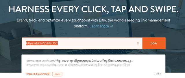 ပထမဆံုး https://bitly.com/ ကို browser တစ္ခုခုမွာ ၀င္ရပါမယ္ ... ေအာက္ပါအတုိင္း ေပၚလာျပီဆုိရင္ေတာ့ ကိုယ္ခ်ဳံခ်င္တဲ့ link ကို သူ႔ရဲ႕ box ထဲမွာ ထည့္ေပးရပါမယ္ ...