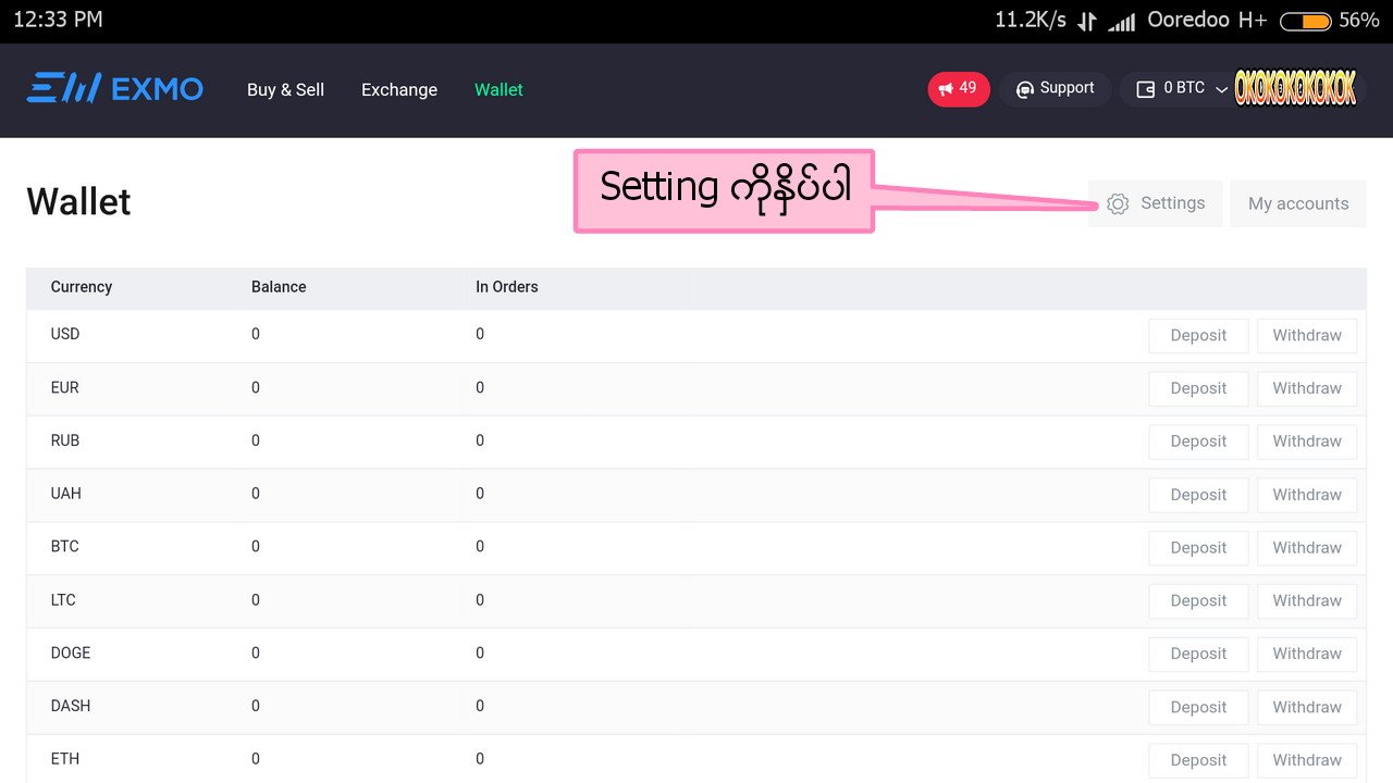 ဟုတ္ကဲ့။အခု က်ြန္ေတာ္တို့ ဆက္လက္ျပီးေတာ့ ''Exmo'' မွာ ေငြအသြင္းအထုတ္(Deposit & Withdrawl) အေျကာင္း သြားျကရေအာင္ ခင္ဗ်။