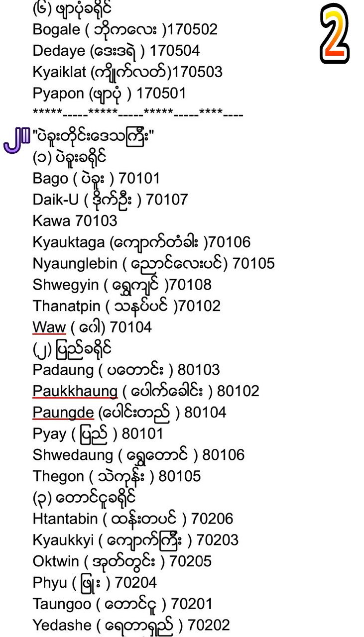 postal code ေတြ လိုအပ္ရင္ ရွာမရဘူး သိမ္းထားပ်ေဇ