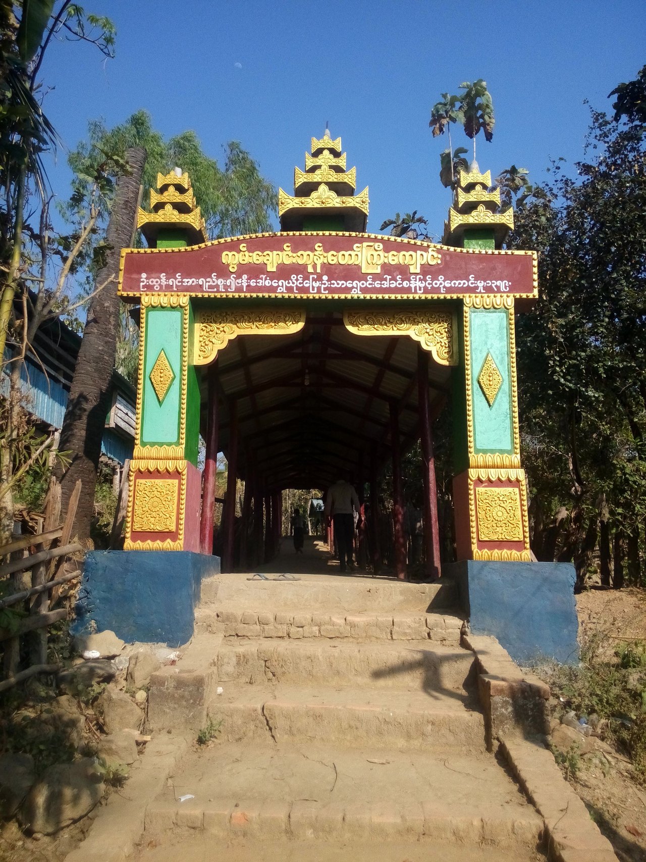 ထိုမုခ္ဦးမွတဆင့္ ေစာင္းတန္းအတိုင္းကၽြန္ေတာ္တို႔ႏွစ္ေယာက္ဘုန္းႀကီးေက်ာင္း၀င္းအတြင္းသို႔ ၀င္ေရာက္ခဲ့ၾကျပန္ပါတယ္။ဘုန္းေတာ္ႀကီးေက်ာင္းကေတာ့ သူတို႔ရြာအေနအထားနဲ႔ အေတာ္ေလးကို တင့္တယ္လွတယ္ဟုလည္း ခံစားမိျပန္တယ္။