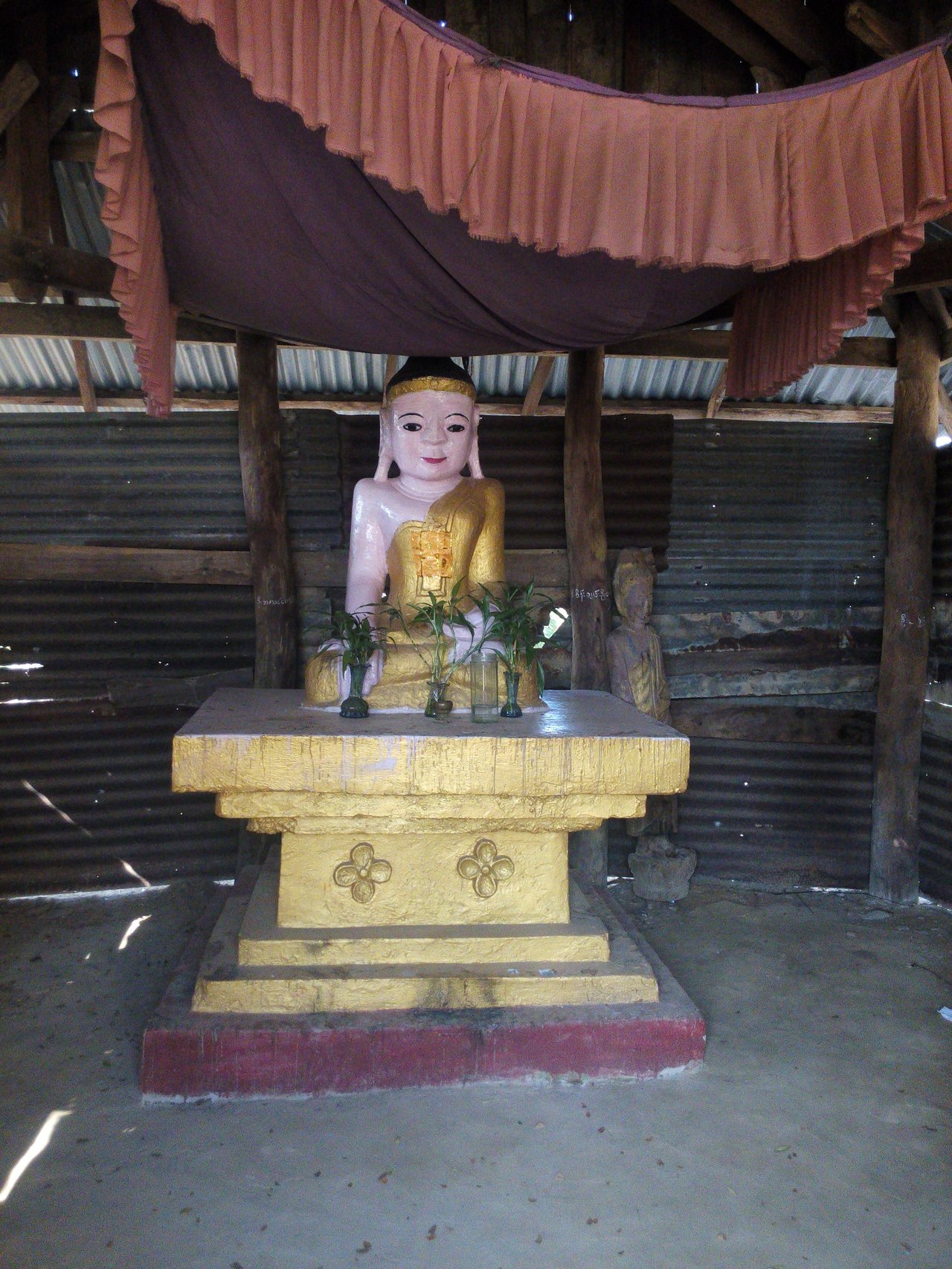 ေစတီနဲ႔ မလွမ္းမကမ္းတြင္ေတာ့ ဘုရားေက်ာင္းေဆာင္တစ္ခု ရိွေနခဲ့ပါတယ္။ဘုရားေက်ာင္းေဆာင္ရဲ႕ ေရွ႕မ်က္ႏွာကိုေတာ့ သံျဖဴမ်ားျဖင့္ ကာရံထားၿပီး လူတစ္ကိုယ္စာသာ အ၀င္ေပါက္တစ္ခုသာ ျပဳလုပ္ထားသည္ကိုေတြ႔ရိွခဲ့ပါတယ္။ထိုသို႔ဘာေၾကာင့္ကာရံထားသလဲဆိုေသာ အေတြးကိုက အထဲမွာ ဘုရားရိွမယ္ဆိုတာ သိေသာ္လည္း ပိုမိုဖူးေျမာ္ခ်င္စိတ္မ်ား ေပၚေပါက္လာခဲ့ျပန္ပါတယ္။