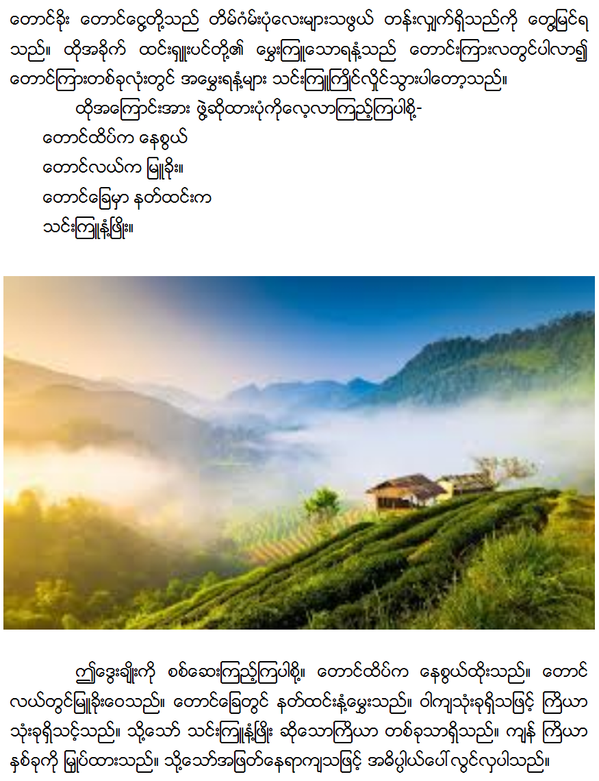 ဦးေလးေရးသားသမွ်ကိုမွတ္သားထားပါတယ္ခင္ဗ် ျပန္လည္ေ၀မွ်တဲ့အတြက္ေက်းဇူးပါခင္ဗ်