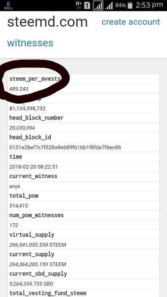 ပထမဆံုး https://steemd.com ကို သြားပါ။ၿပီးရင္ steem_per_mvests တန္ဖိုးကို မွတ္ခဲ့ပါ။