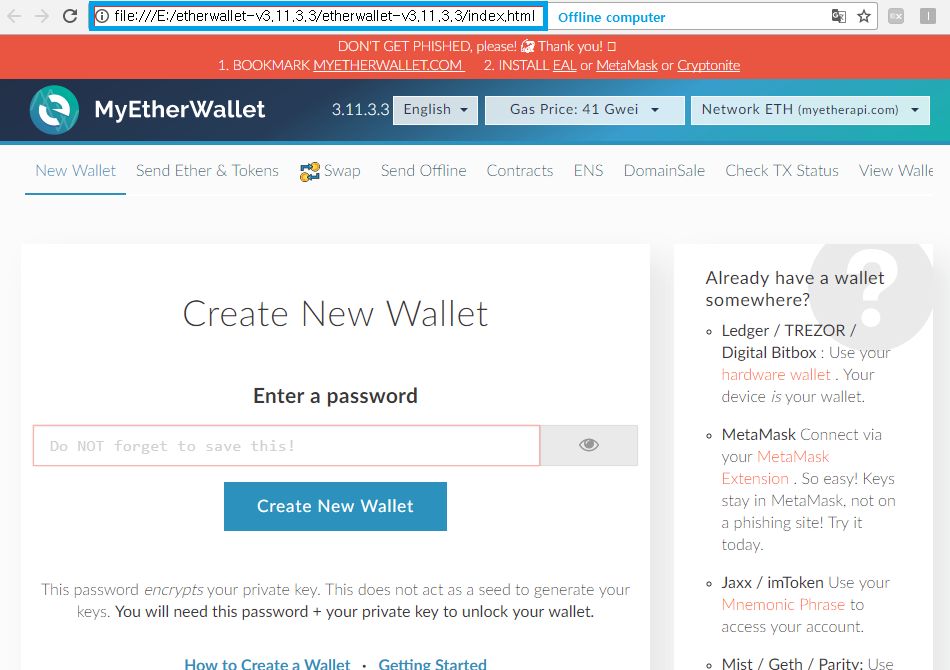 거래소에서 콜드 지갑 사용하는 것처럼, 개인도 myetherwallet 을 이용해서 콜드 지갑을 사용할 수 있습니다.