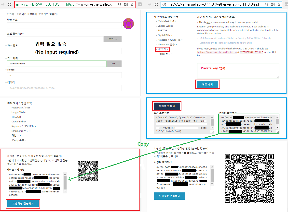 Myetherwallet 을 이용한 콜드지갑 출금 (Using myetherwallet like Cold wallet)