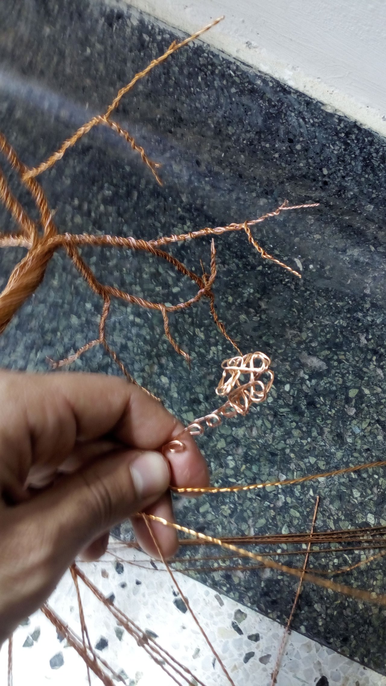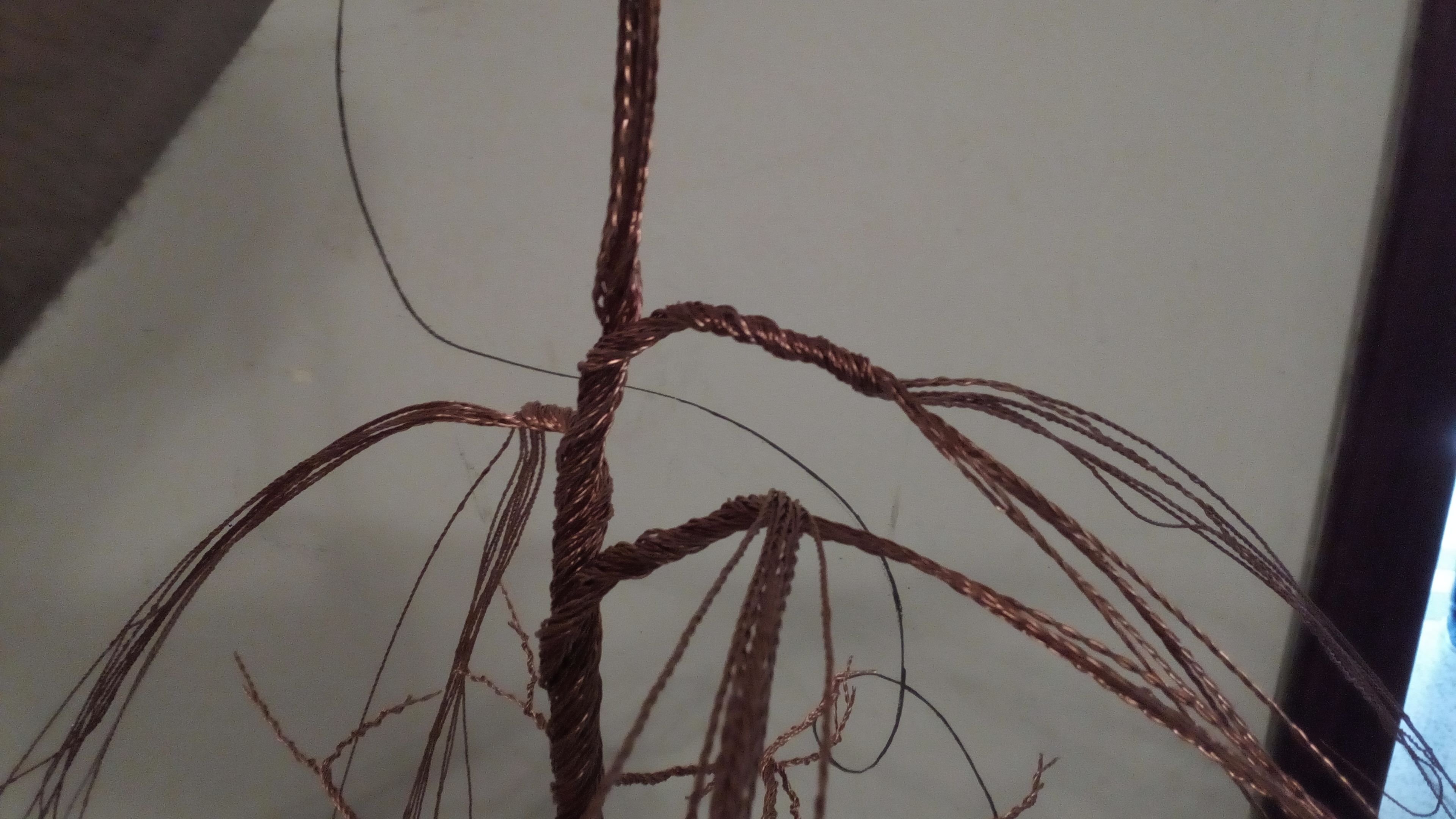 later you can start making the branches, the size of the branch will depend on you, take all the copper hair that you want for that branch and twist it....... here is my first branch