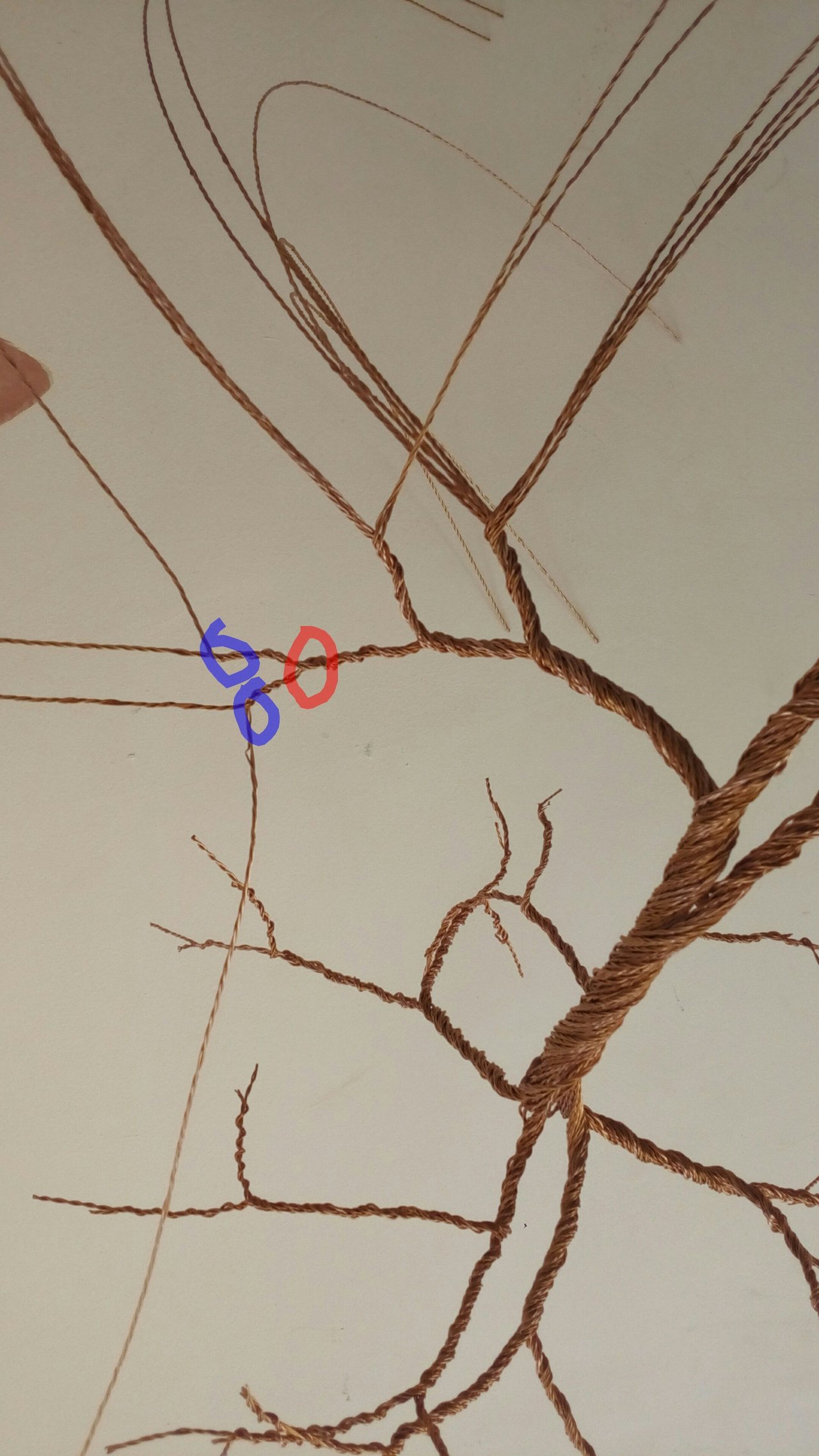 finally when you get to the hair you must stop twisting, on this part whe are going to start making the leaves.....this branch gave me 4 leaves
