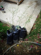 Wow it was a hot day today. I went out an hour before sunset, just thought that it would be a little cooler to plant the saplings. I must of sweat a small bucket's worth. Do remember this is a quite arid environment, soil is tough here!