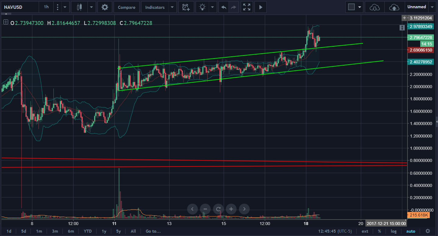 NAV broke above the channel it had been forming over the last several days. It now appears it may be finding support on top of the previous upper resistance.