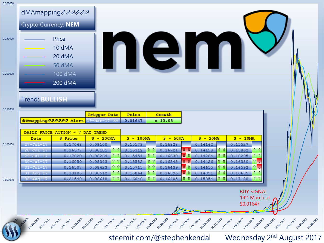 NEM triggered a dMAmapping⇗⇗⇗⇗⇗⇗ BUY Alert Signal on 19th March 2017 at $0.01647.