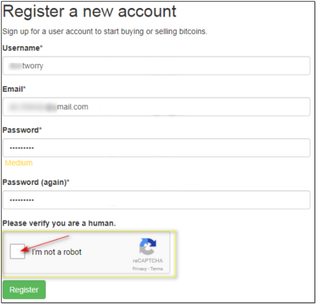 Give yourself a good account name, at least a medium level complex password, then click I'm not a robot :