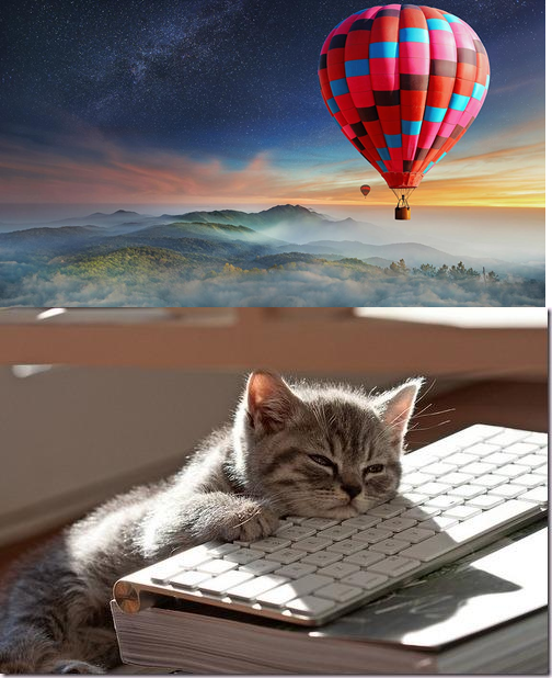 above board...the balloon is above the mountains and the cat looks bored. above board (but different spelling with bored) Does that make sense? :)